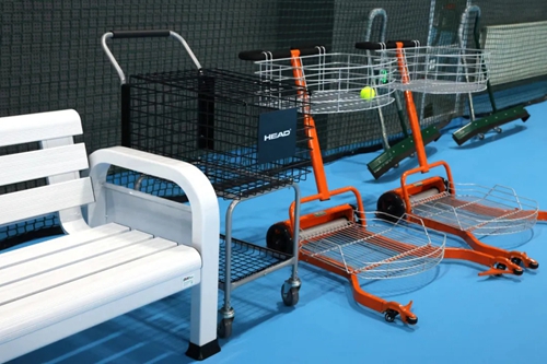 場邊配備數(shù)組休閑座椅、撿球推車