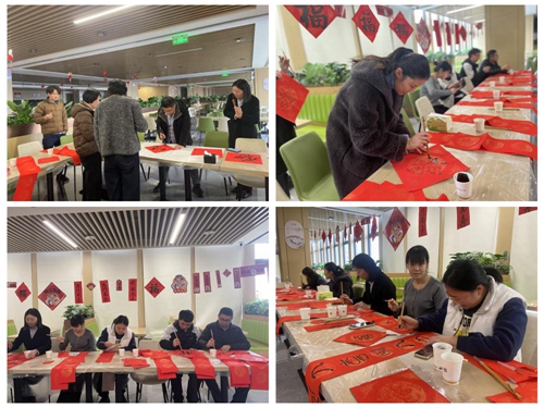 在這如詩(shī)如畫的美好時(shí)刻,我們以一副春聯(lián)凝聚夢(mèng)想的光輝,迎接新春的腳步。活動(dòng)伊始,來(lái)自城發(fā)產(chǎn)城公司工程設(shè)計(jì)部的張馨友老師現(xiàn)場(chǎng)揮毫潑墨,他的筆下,每一劃都似春風(fēng)拂面,每一點(diǎn)都像細(xì)雨潤(rùn)心,將美好的愿景與溫暖的問(wèn)候融入到那一幅幅靈動(dòng)的字跡之中。與此同時(shí),活動(dòng)現(xiàn)場(chǎng)精心準(zhǔn)備了豐富的書寫工具,這里,不僅是紙墨交融的地方,更是心靈交匯、智慧碰撞的空間,在揮灑筆墨的過(guò)程中體驗(yàn)到了傳統(tǒng)文化的獨(dú)特魅力。