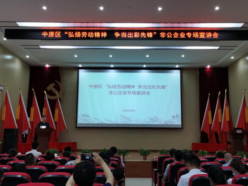 為充分發(fā)揮中原新區(qū)聯(lián)合黨委基層黨校在黨的理論教育上的主陣地作用和在黨性教育上的大熔爐作用,在黨校中弘揚(yáng)習(xí)近平總書(shū)記給圓方集團(tuán)職工的重要回信精神,真正使聯(lián)合黨委基層黨校成為黨員干部思想政治教育的紅色殿堂,6月5日和9日,中原區(qū)“弘揚(yáng)勞動(dòng)精神 爭(zhēng)當(dāng)出彩先鋒”企業(yè)、班組專場(chǎng)及非公企業(yè)專場(chǎng)宣講會(huì)在中原新區(qū)聯(lián)合黨委基層黨校舉行,中原區(qū)委組織部組織科科長(zhǎng)蔚光勛、西流湖公司副總經(jīng)理昌磊出席活動(dòng),共有來(lái)自中原區(qū)各街道辦事處、各企業(yè)的150余名黨員職工聆聽(tīng)了宣講。